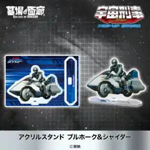 アクリルスタンド サイバリアン&ギャバン/モトシャリアン&シャリバン/ブルホーク&シャイダー 各1,375円(税込) |