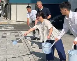 今後は、地域の学生・児童の皆さんにもご参加いただき、地域全体での取り組みへと発展させていけたらと考えています。打ち水を通じて、地域の皆様に水資源の大切さや環境問題への関心を高めていただくとともに、世代や立場を超えた交流が生まれ、地域の活性化につながるお手伝いをすることができればと考えております。 |