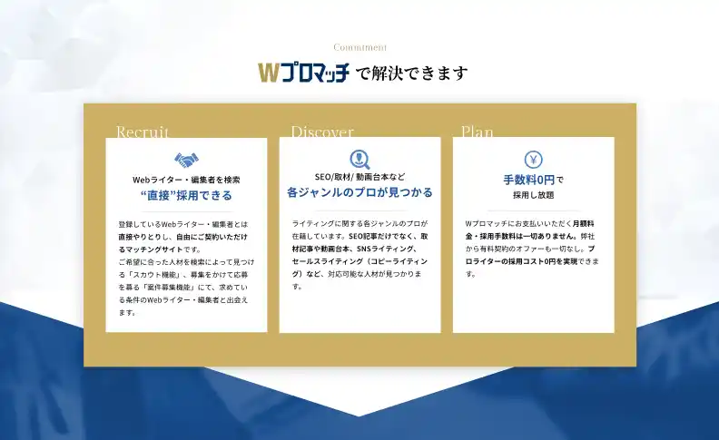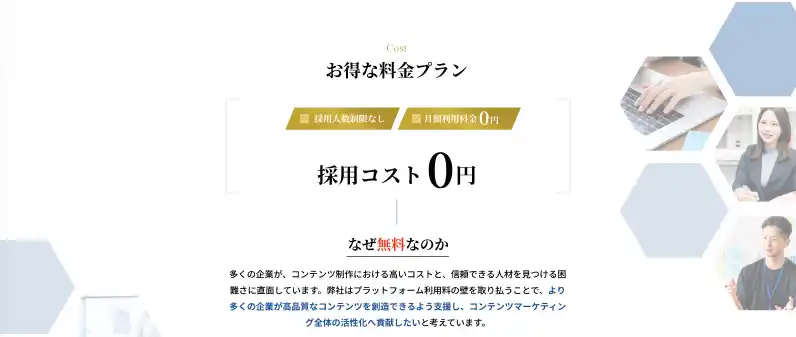 紛れもなく「完全無料」で、ハイスキルなWebライター・編集者・SEOコンサルタントと企業をつなぐ、業界初の試みとなります。 |