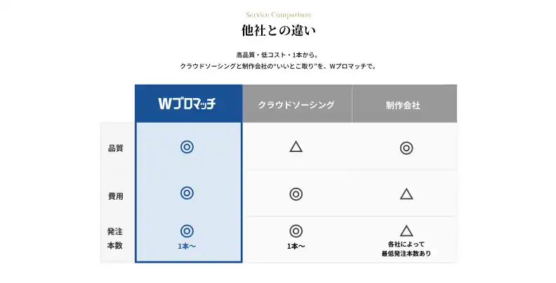 一般的なクラウドソーシングサービスでは報酬額の20~30%が手数料として発生しますが、Wプロマッチではマッチング手数料を一切いただいておりません。 |