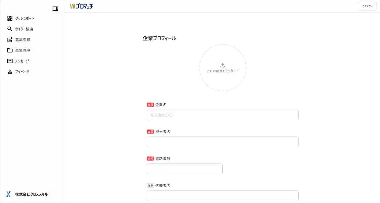 企業プロフィール作成ページ |