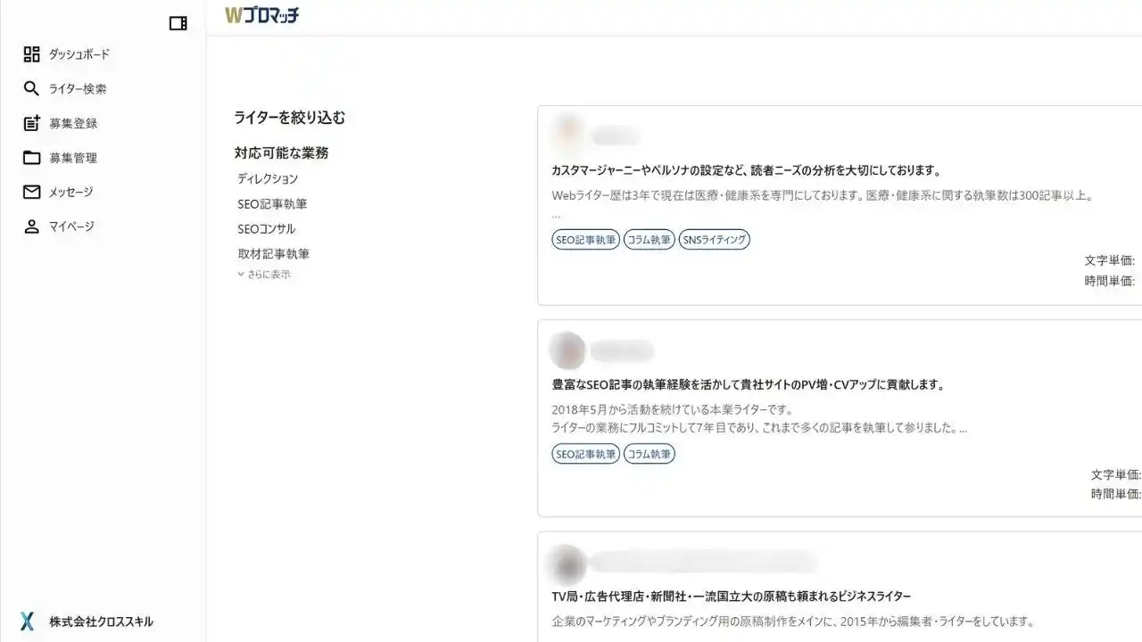 厳格な登録審査を通過した上位10%のWeb人材のみが所属 (Webライター・編集者・SEOコンサルタント) |