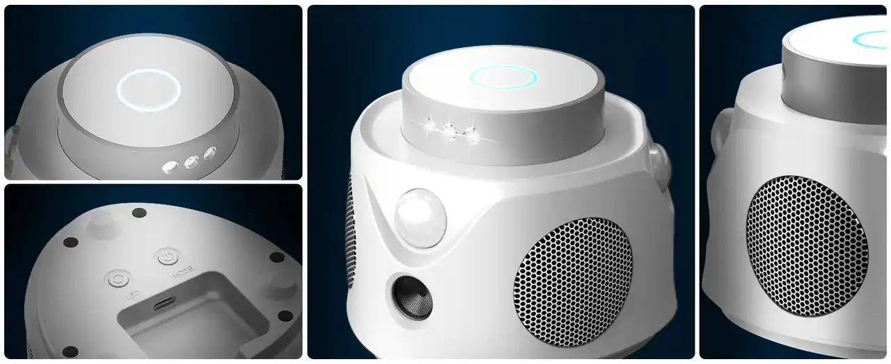 全方向に超音波を発信し、広範囲をカバー。9つのフラッシュライト機能と周波数改良により、より幅広い空間で効果を発揮します。 |