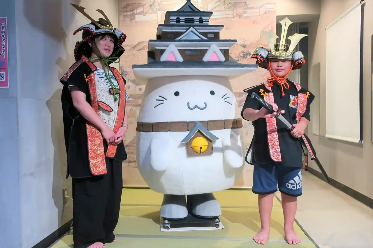広島城キャラクター「しろうニャ」と記念撮影! |