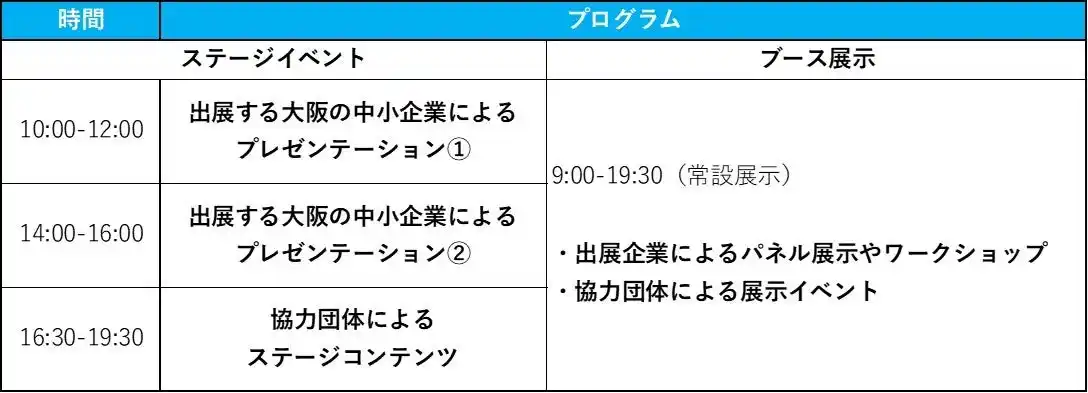 さらに、3つの中小企業経営者団体が協力機関として参画し、ステージでのトークセッションや展示企画を通じて、まだ知られていない大阪の中小企業の魅力を広く発信します。 |