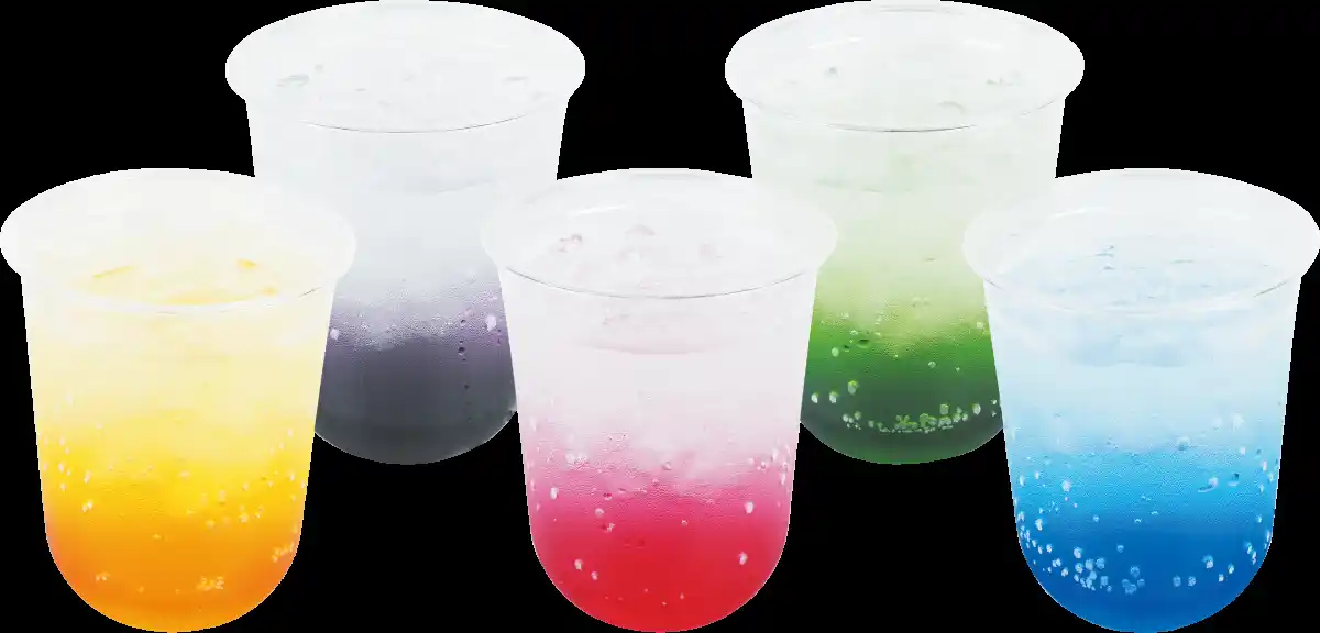 クロミのマジカルソーダ(ブルーライチ/ピンクレモン/パープルメロン/イエローベリー/グリーンパイン)各600円 |