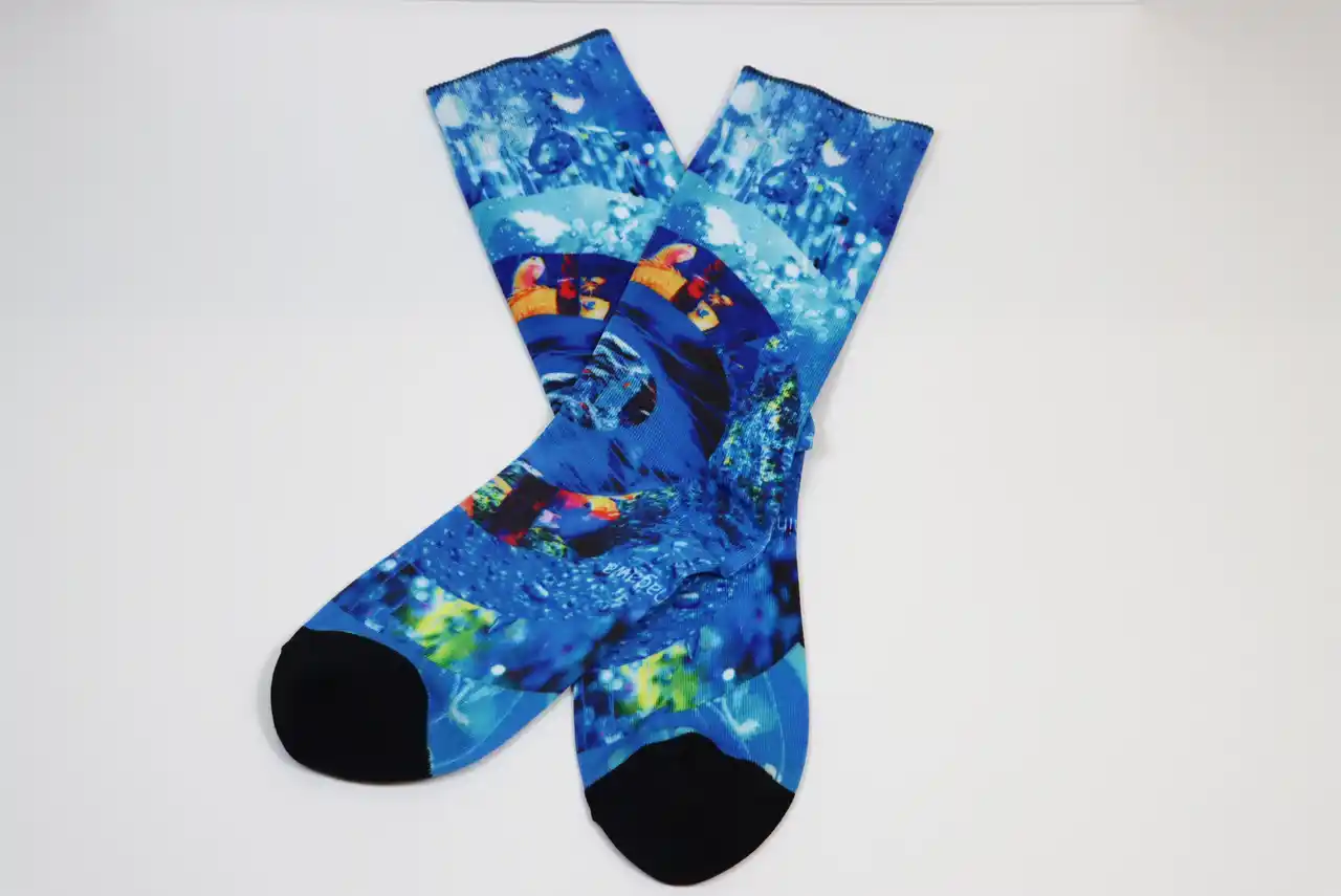 メインビジュアルの美しい色彩をそのままソックスに。足元をさりげなく彩る、身につけるアイテムです。 |