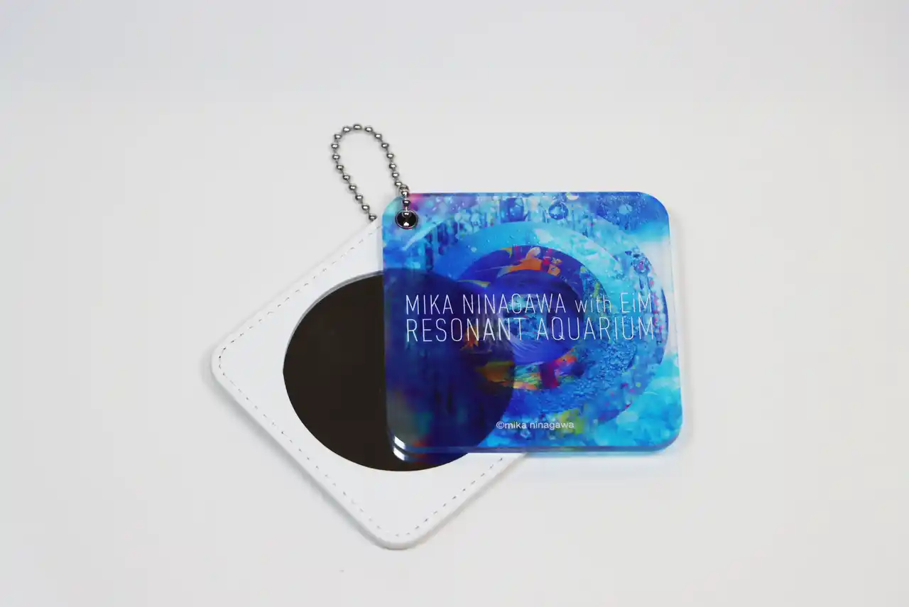 スライド部分に透け感のあるメインビジュアルをあしらった、美しさと実用性を兼ね備えたミラー。ボールチェーン付きで持ち運びにも便利。 |