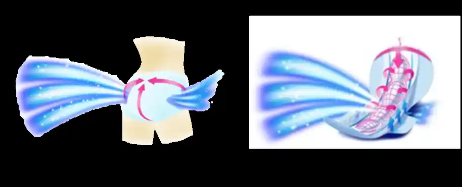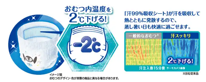 ・紙パンツの外へ熱を発散することで、紙パンツ内の温度を最大2℃※5下げます。 |