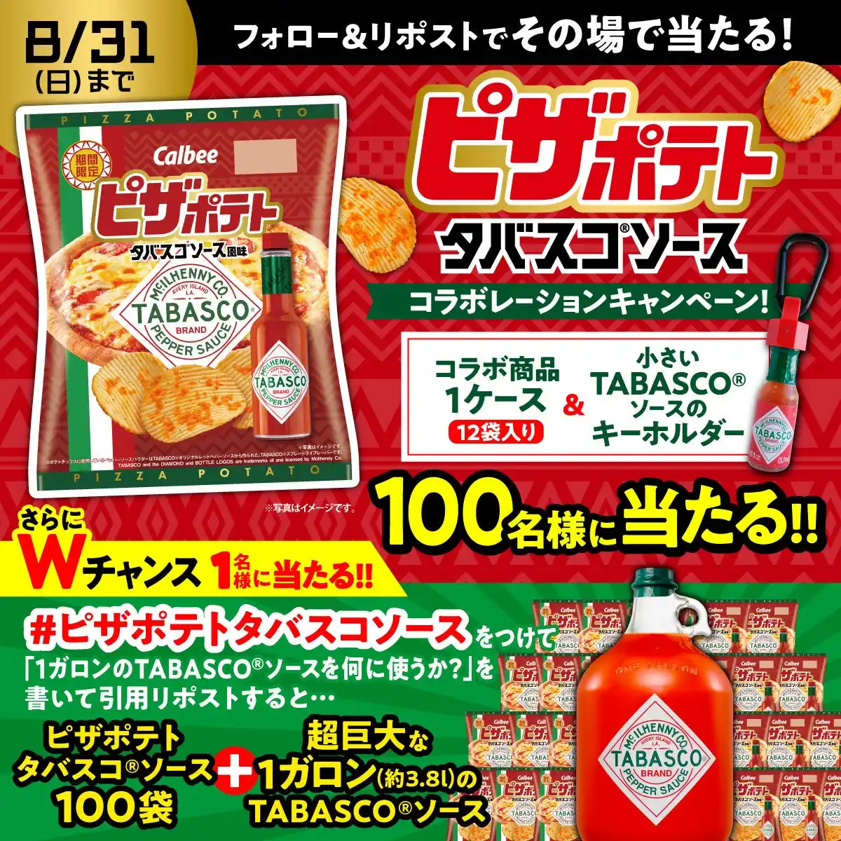 TABASCO(R)ソースとピザポテトの初コラボレーションを記念して、カルビーPR部公式Xアカウント |