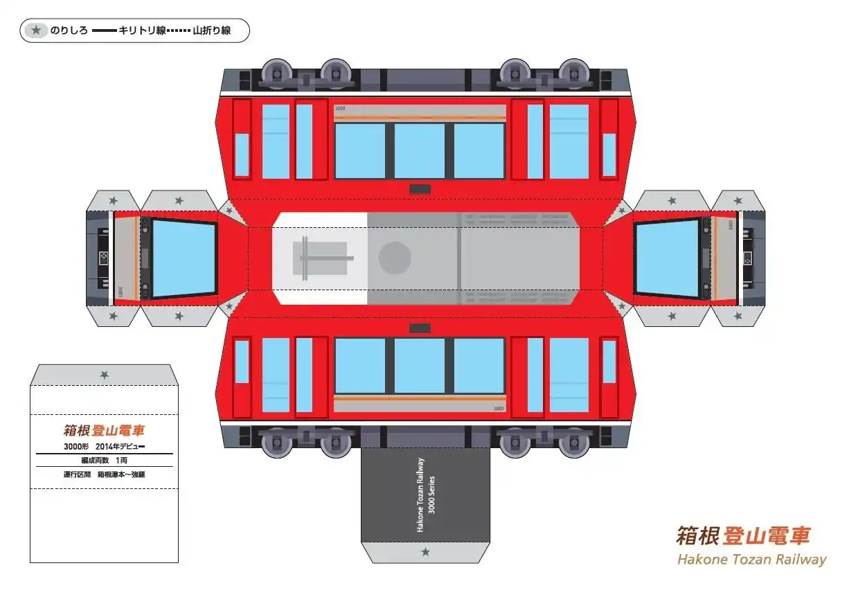 紙を折って組み立てて、箱根登山電車オリジナルのペーパークラフトを作ります。 |