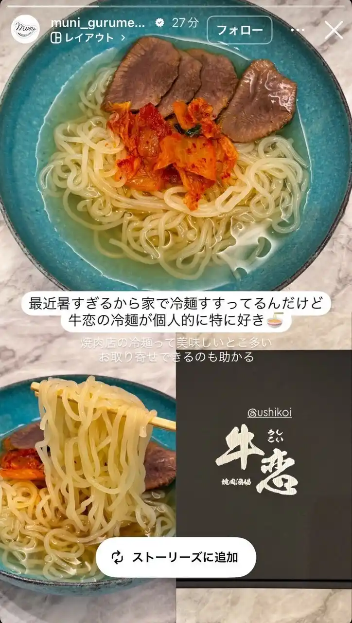| GACKT氏、竹内涼真氏など数多くの著名人が通う人気焼肉店『牛恋』が運営する通販ブランド『ウチ恋』にて、8月5日に再販した通販商品『鶏だし冷麺』は【2025年7月7日~2025年7月9日】と【2025年8月5日~2025年8月7日】の購入件数を比較すると、6倍に急増していることが分かりました。 | |||||||||||||||||