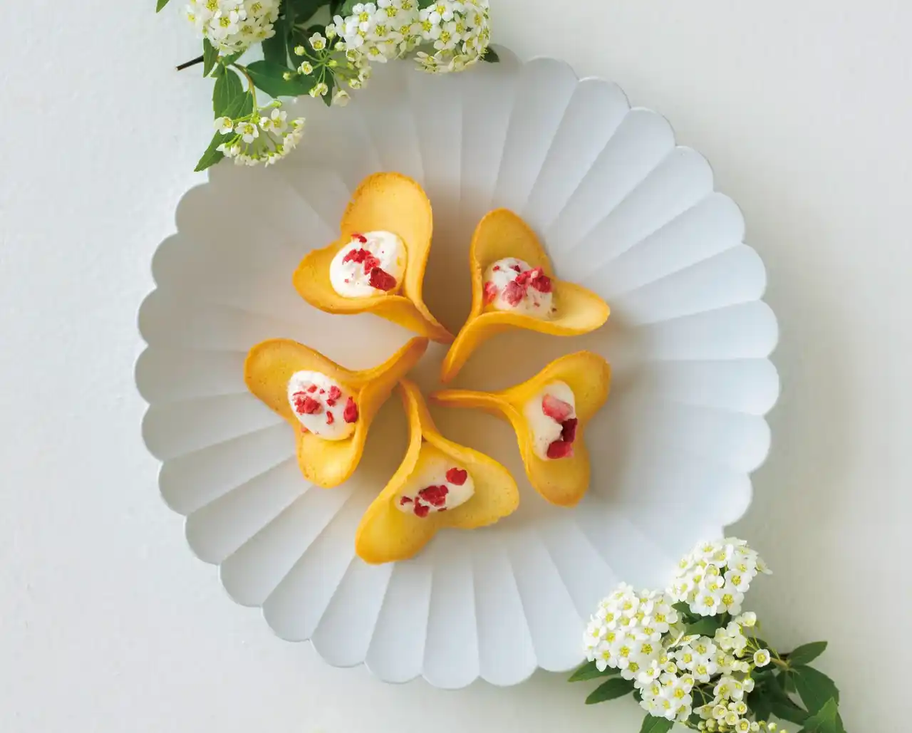 一番人気のお花のかたちがかわいいラング・ド・シャ「ルフル」をはじめ、たっぷりのベリーソースをかけたふわふわなシフォンケーキが大丸東京店に初登場!目にも華やぐ可愛らしいスイーツをぜひ、お楽しみください。 |