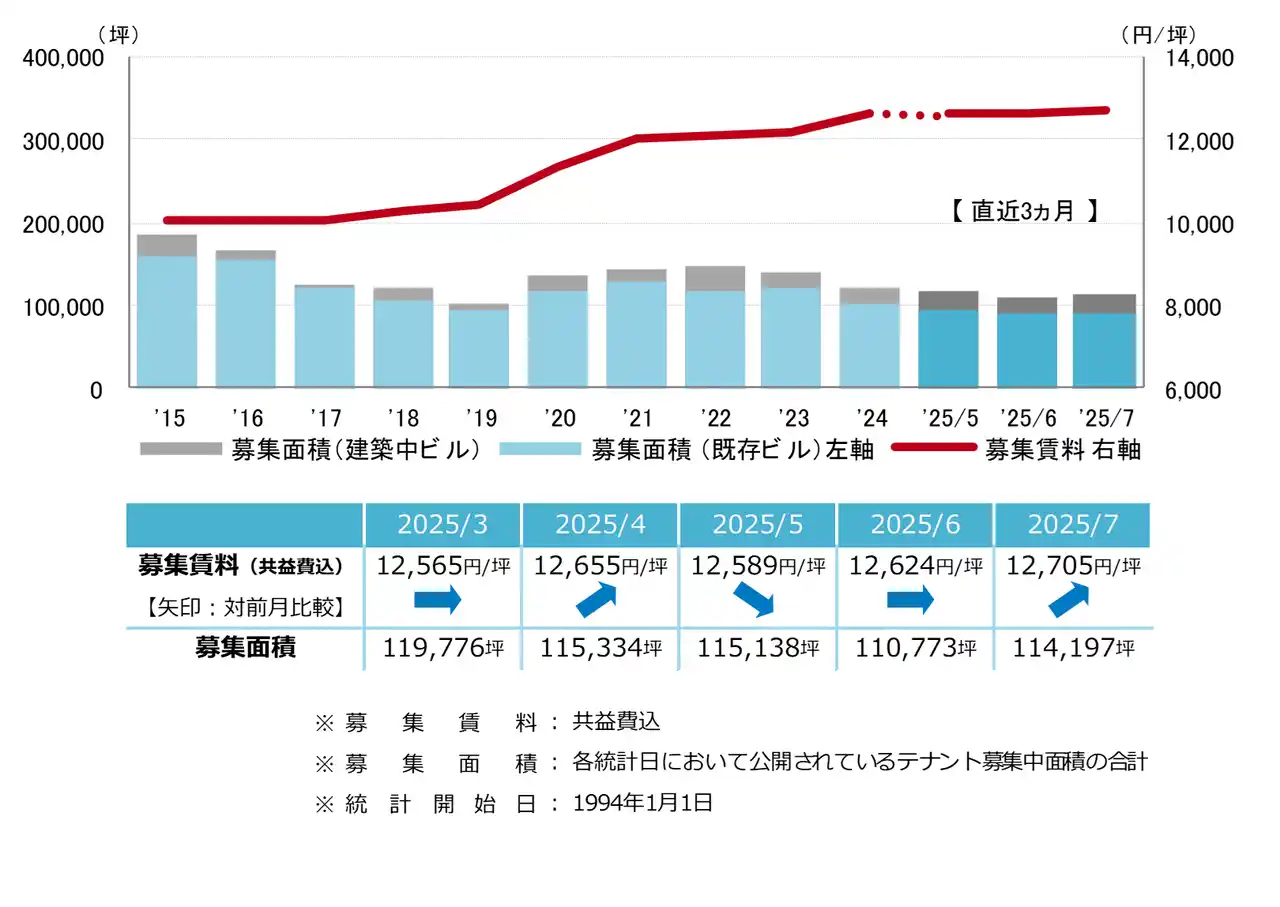 募集賃料 2ヵ月連続で上昇 12,000円/坪台での小幅な動き |