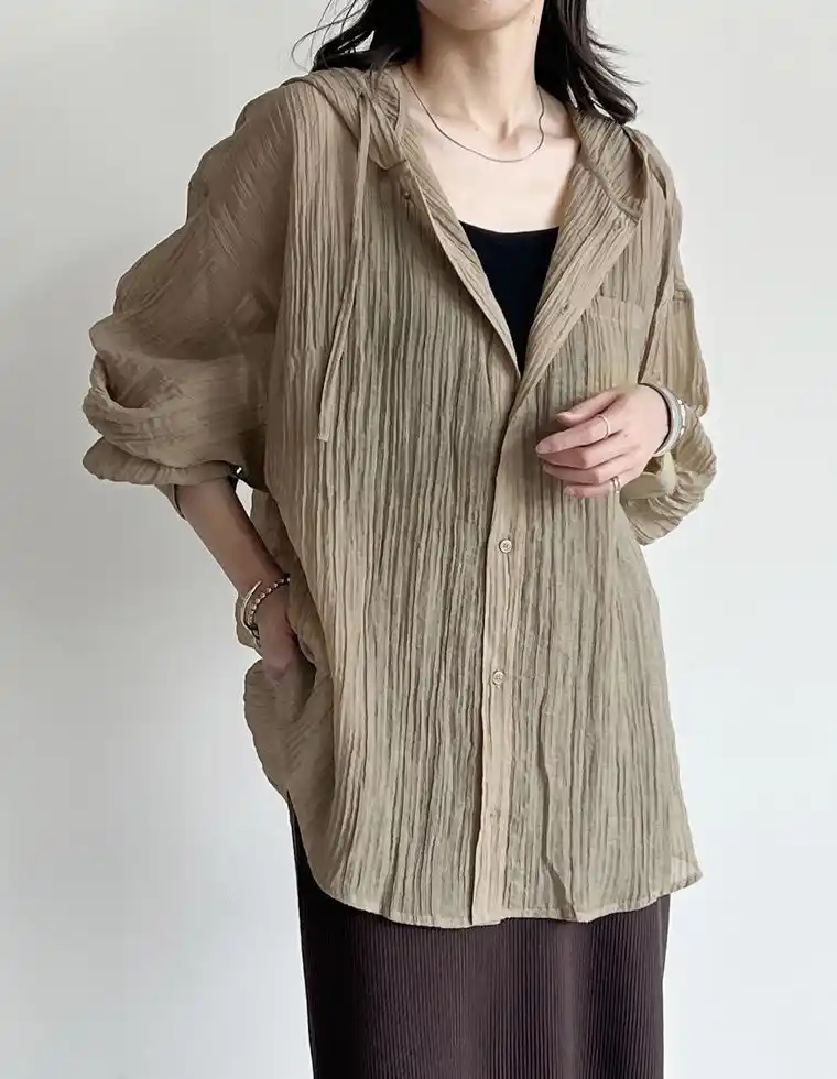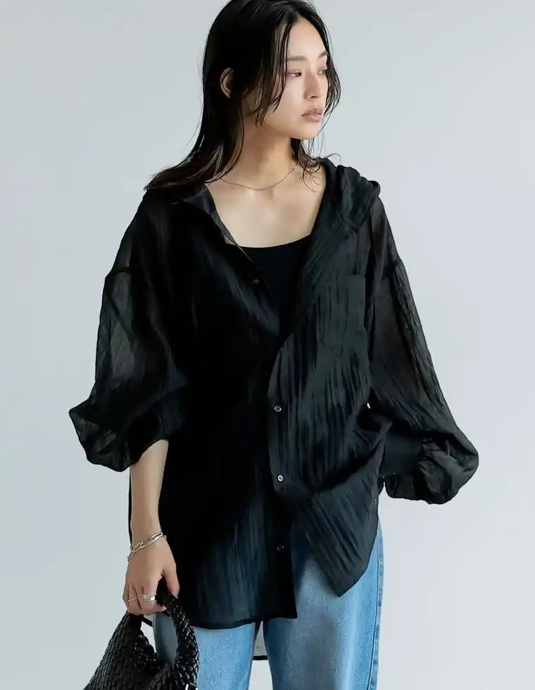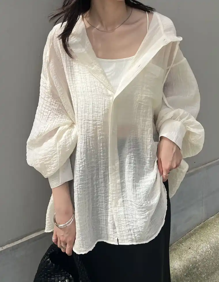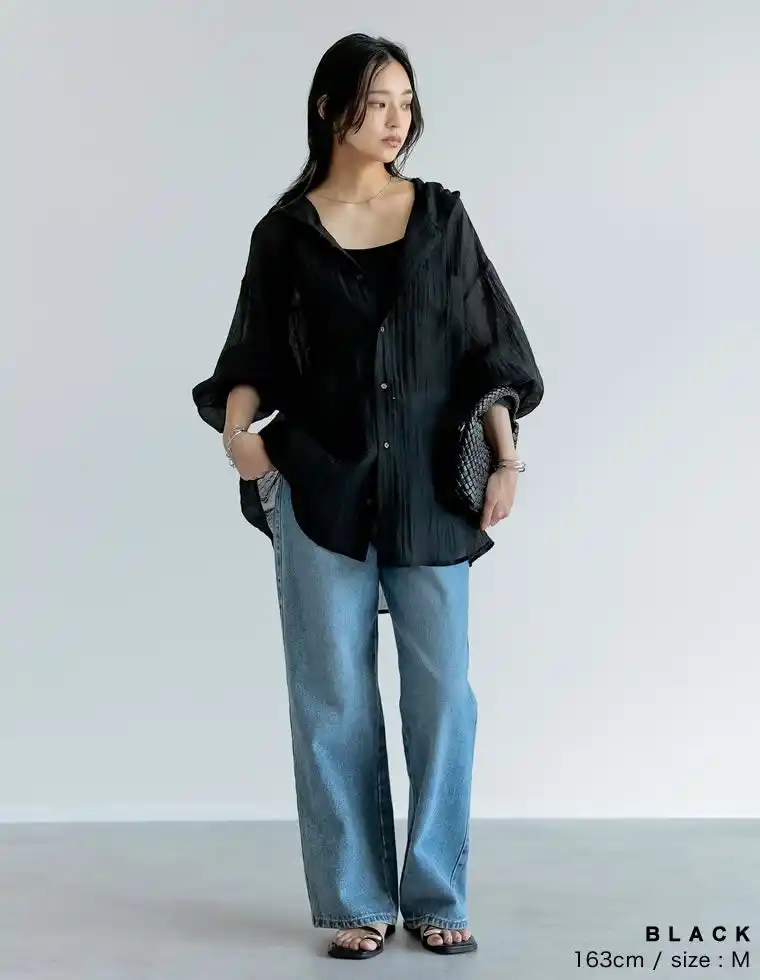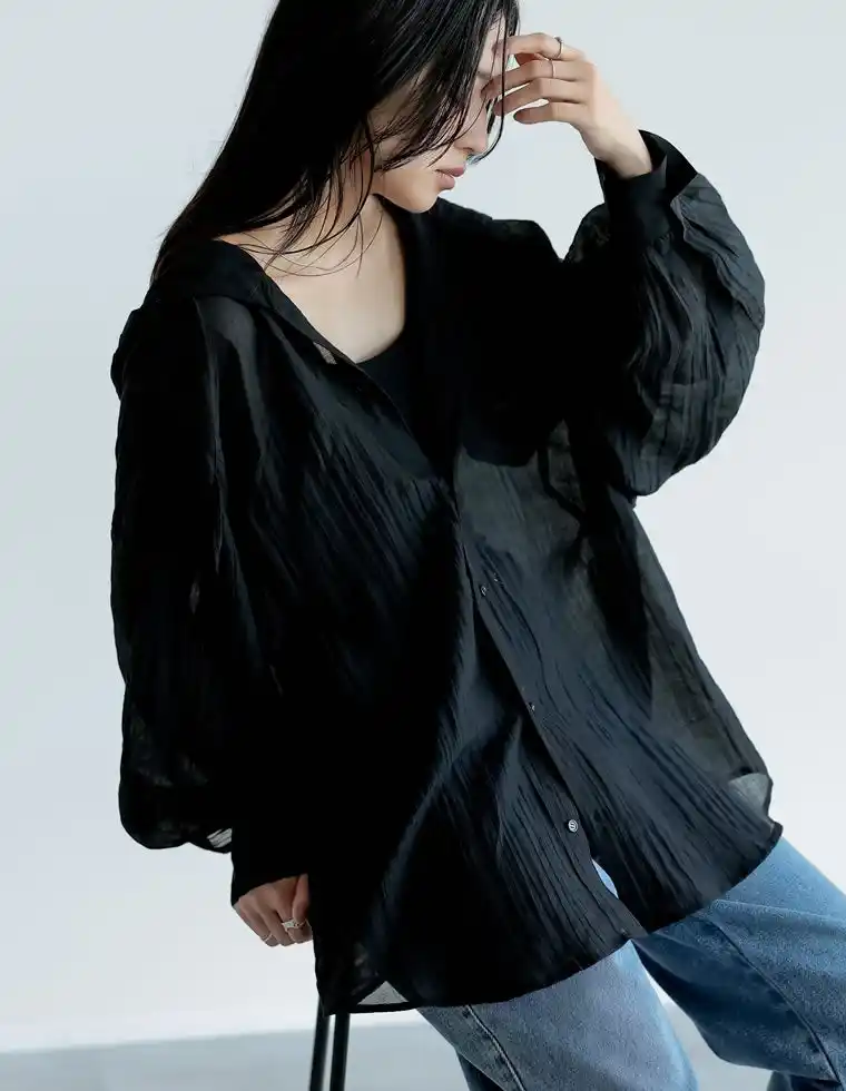 軽やかな生地感と程よい透け感が、春夏のレイヤードスタイルにぴったりです。 |