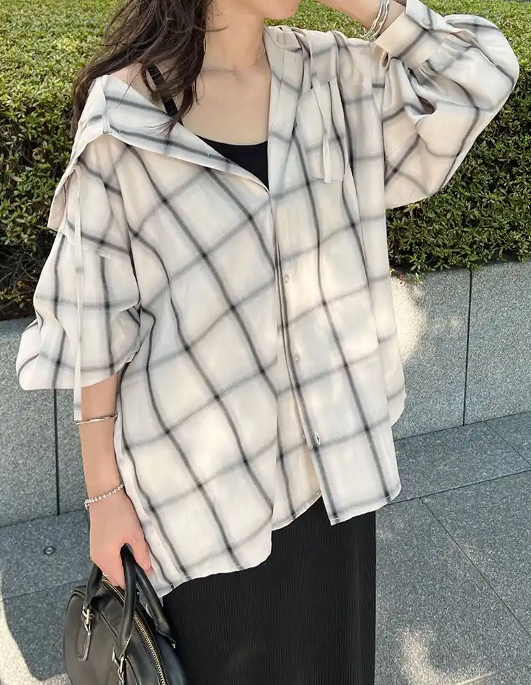 無地orチェック柄フード付きオーバーサイズシャツ |