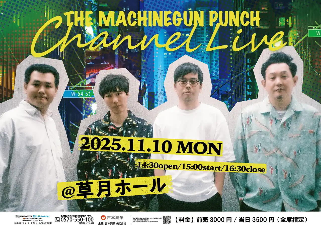 2025年3月に開設したザ・パンチとマシンガンズの公式YouTubeチャンネル「ザ・マシンガンパンチチャンネル」の初となる公開収録イベントを11月10日(月)草月ホールにて開催します。本イベントでは、番組でおなじみのトークや企画をリアルな場で体験できる特別な一日となっており、番組ファンのみならず、お笑いファン必見の内容となっています。 |