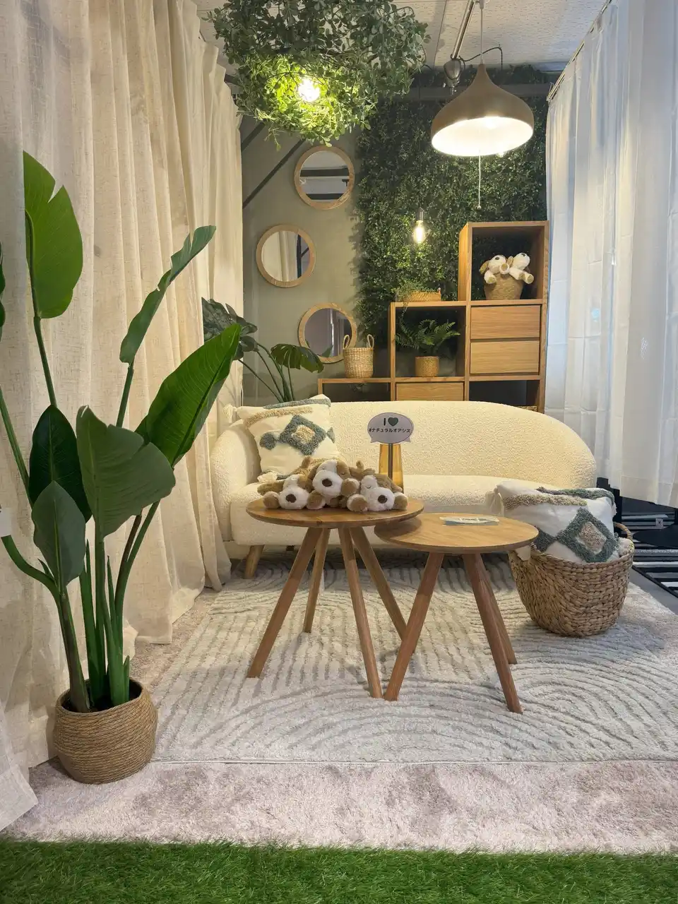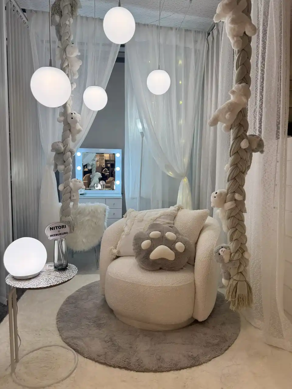 ニトリ初のフォトスポット型コーディネートルームでは「ナチュラルオアシス」「モダンミニマル」「ソフトガーリー」3つのインテリア空間をご提案します。テーマごとに素材感や色味を統一し、きらりと光る照明やミラーで特別感を演出した、思わず写真を撮りたくなるフォトジェニックな空間です。さわって、座って、撮影を楽しみながら、ご自身の好きなインテリアスタイルを発見した際は売場やニトリネットでそのスタイルに合うアイテムをご覧いただけます。幅広いスタイルがそろうニトリのラインアップで、ぜひお部屋のコーディネートをお楽しみください。 |