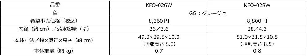 『セラプロテクトシリーズ マルチパンKFO(KFO-026W/028W)』 仕様一覧 |