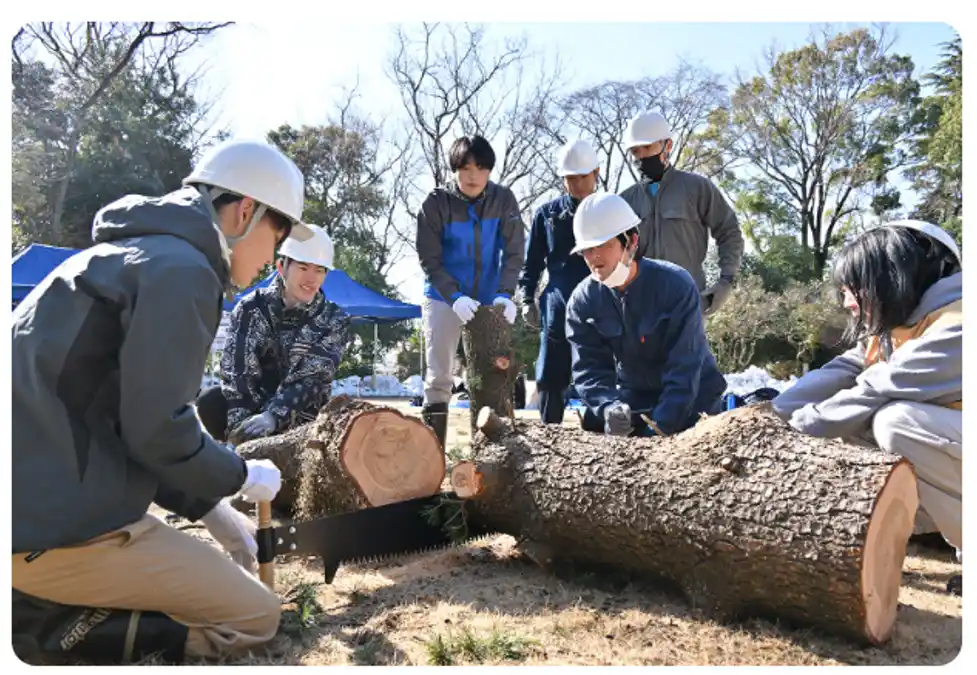 そこでキャンパス内の樹木の整備と学園での学びを「木の輪」でつなぐことを目的にした活動「Tamagawa Mokurin Project」をスタートさせました。Tamagawa Mokurin Projectは木の輪と人の輪をつなぎ、拡げることで未来の地球環境保全に貢献していきます。 |