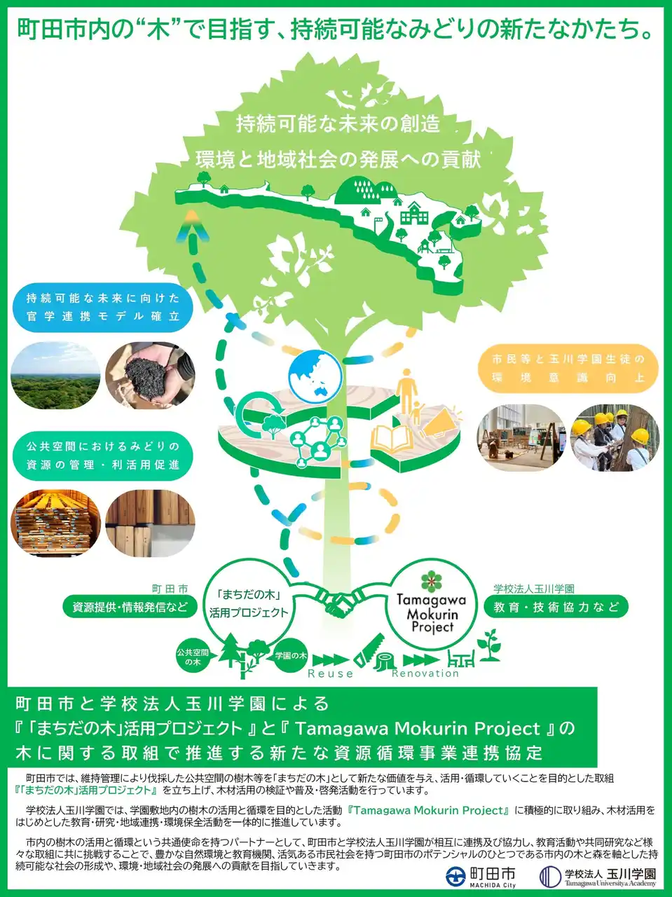 町田市と学校法人玉川学園による『「まちだの木」活用プロジェクト』と『Tamagawa Mokurin Project』の木に関する取組で推進する新たな資源循環事業連携協定 |