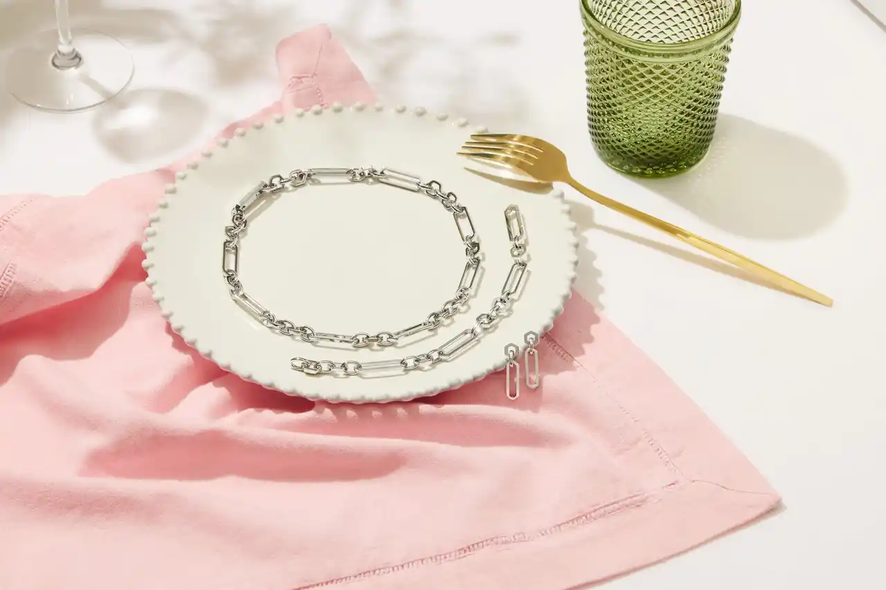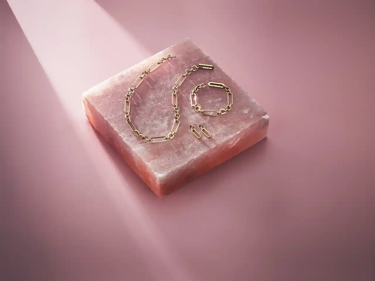また、アクセサリーライン“Hex Link”では、ブランドの象徴であるハニカムモチーフを大胆に再構築。重厚感のあるチェーンに抜け感を加えた、日常にも特別な日にも映える新しい“ステートメントジュエリー”が誕生しました。 |