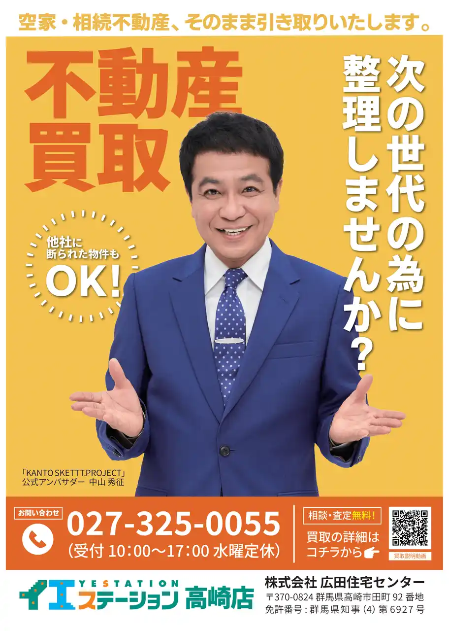 中山秀征さんのご出身地である群馬県で不動産業に取り組まれる広田住宅センター様が、タレント起用という新たな挑戦をされることを大変嬉しく思います。 中山さんの高い認知度と親しみやすさを活かして、広田住宅センター様の想いが多くの方に届くよう、「JAPAN SKETTT. PROJECT」を通じて全力でサポートしてまいります。 この取り組みが地域にさらなる元気と誇りをもたらすことを心から願いながら、今後の展開を楽しみにしております! |