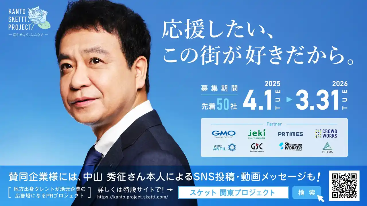 さらなる認知拡大を目指し、「KANTO SKETTT. PROJECT」を通じて、中山秀征さんを起用しました。 |
