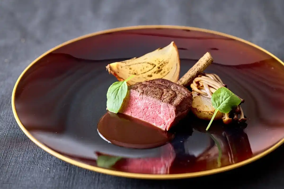 ・北海道産しほろ牛フィレ肉と旬の焼き野菜 3,500円(1皿1人前) |