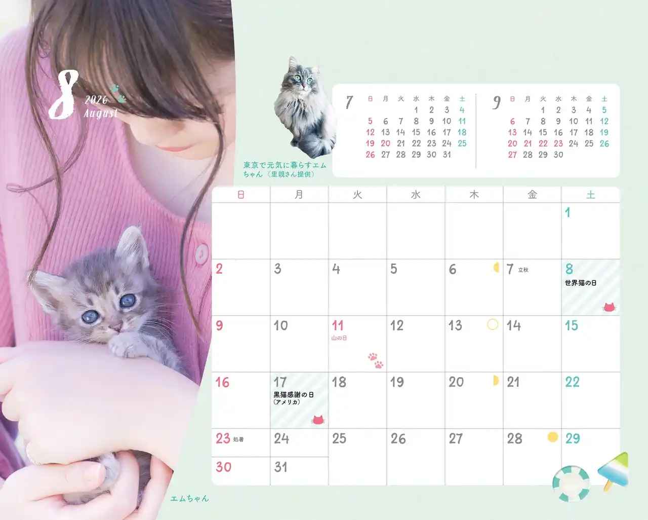 今年はもうひとつ、ミルクボランティアとして離乳前のねこをひきとり、里親につなぐまでの活動を積極的に行っている保護ねこ写真家・三吉良典さんによる『にゃっぷる 保護ねこカレンダー2026 卓上版』も同日、2025年9月10日より発売いたします。 |
