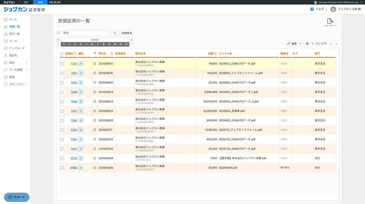 このような企業の要請に応えるべく、この度『ジョブカン証憑管理』に「部門・権限機能」を新たに搭載いたしました。全社で証憑を一元管理できる利便性はそのままに、部門や役職に応じたセキュアな管理体制の構築を可能にし、企業の内部統制強化をより一層支援します。 |
