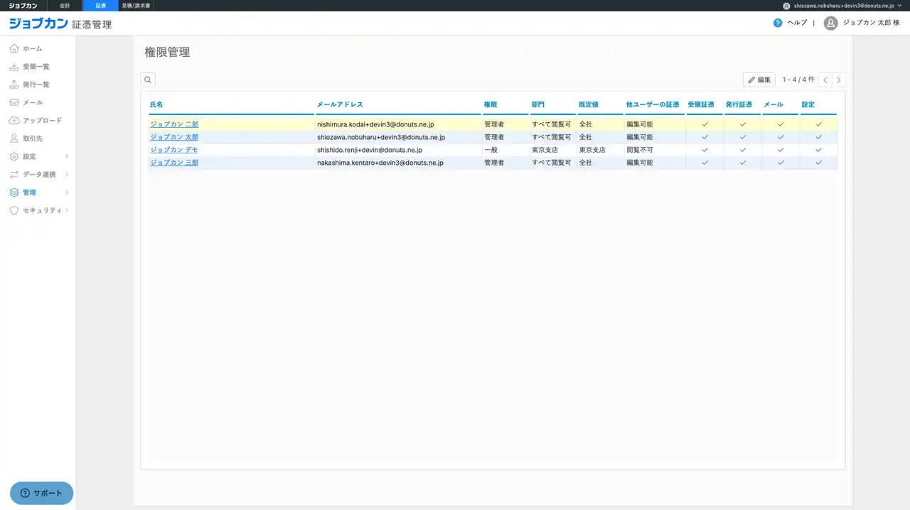 本機能の実装により、複数部署にまたがる企業での利用や、内部統制上、厳格な権限管理を必要とする運用にも柔軟に対応可能となりました。 |