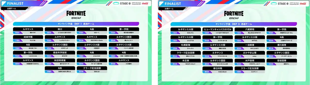 『Coca-Cola STAGE:0 2025』全国大会 出場校/出場チーム |