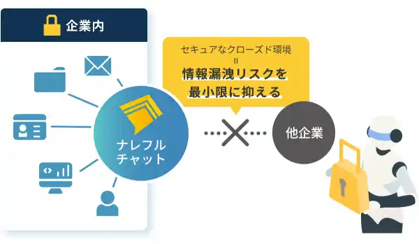 ナレフルチャットは、企業専用のクローズド環境でセキュアに利用できる対話型生成AIチャットツールです。従業員のAIリテラシー向上から、組織全体のナレッジ共有まで包括的にサポートし、企業の生成AI導入における悩みを解決いたします。