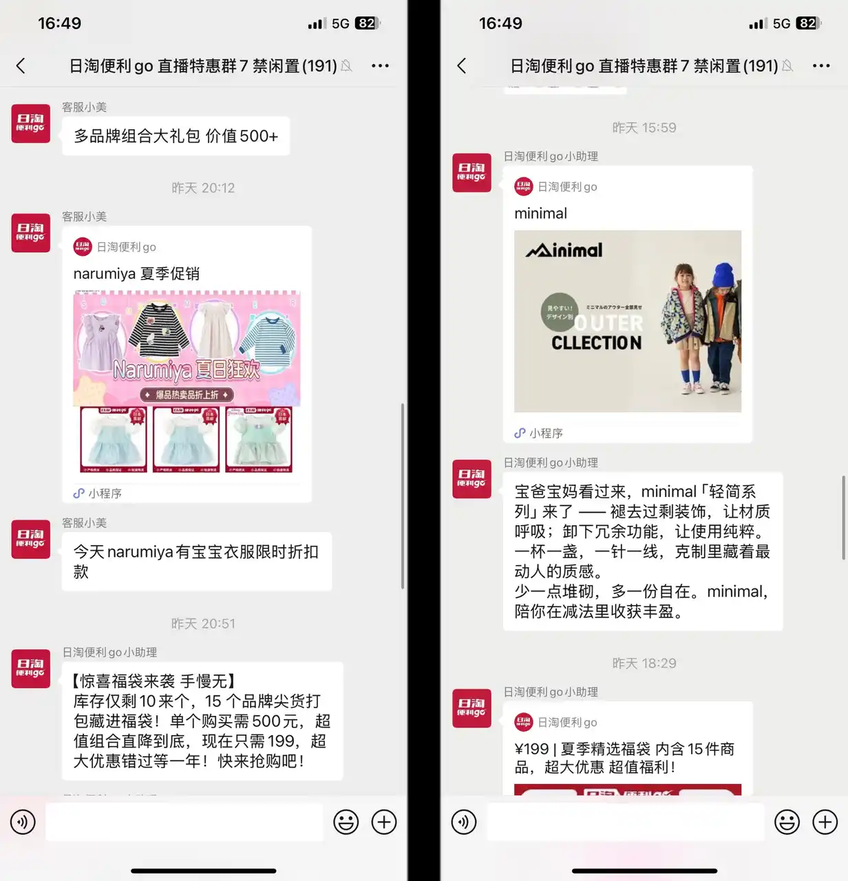 中国で最も普及しているソーシャルメディアアプリ「WeChat」内で簡易版のアプリプログラムが利用できるミニプログラムの「日淘便利go」は、累計ユーザー数が約20万人で、日本のファッションブランドや日用品など幅広いアイテムを取り扱っています。 |