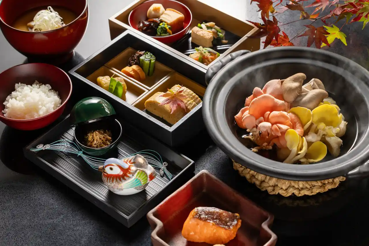 | メインダイニング「日本料理 嘉助」では、きのこ生産量全国1位の長野県(*)ならではの秋の味覚を堪能できます。トキイロヒラタケやタモギダケなど、珍しいきのこを豊富に使用した「きのこ鍋朝食」を提供します。数種類の野菜からとった、栄養が溶け込んだ野菜出汁で仕立てた身体に優しい朝食です。 | |||