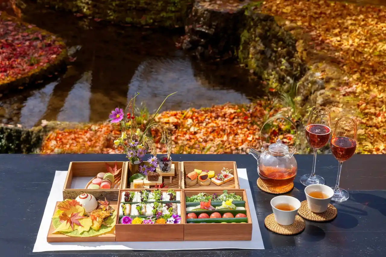 | ■水音が響く特等席で味わう「棚田アフタヌーンティー」秋限定メニュー | |||