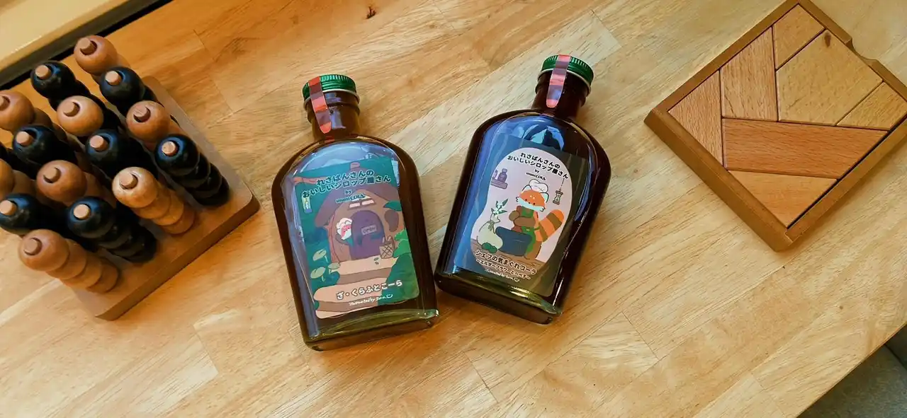 「れさぱんさんのおいしいシロップ屋さん」は、森で出会った素材やハーブを使い、誰でも気軽にクラフトドリンクの世界を楽しめる新しいライン。健康志向の「umami COLA」から派生し、よりライトで遊び心のある世界観をお届けします。パッケージには、森でコーラ作りに励むれさぱんさんの描き下ろしイラストを使用し、ギフトにも映えるデザインに仕上げました。 |