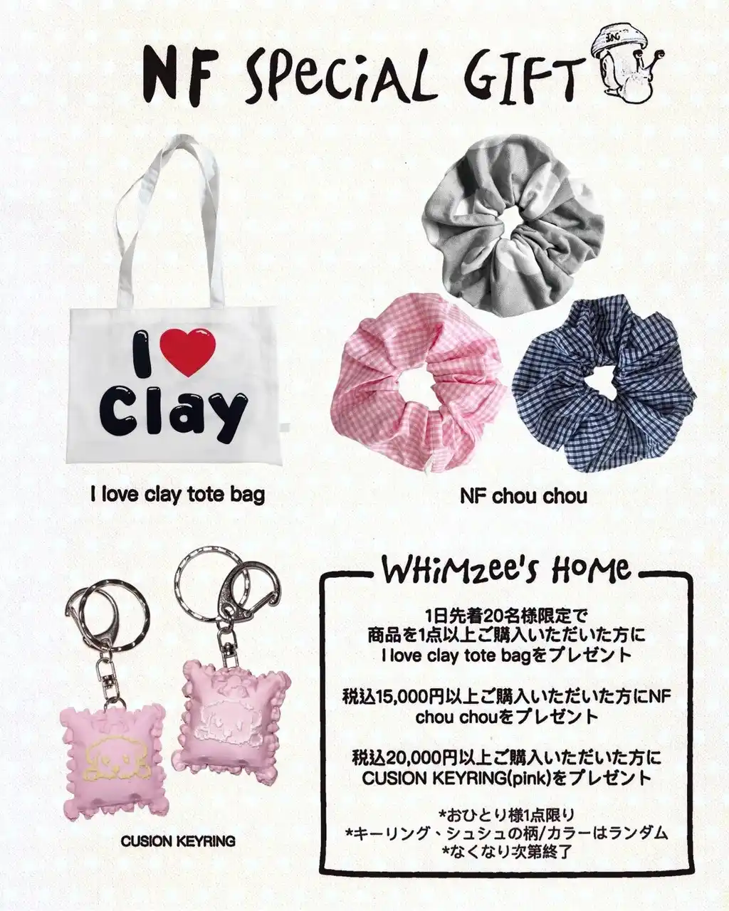 1.1日先着20名様限定で商品を1点以上ご購入いただいた方にI love clay tote bagをプレゼント |