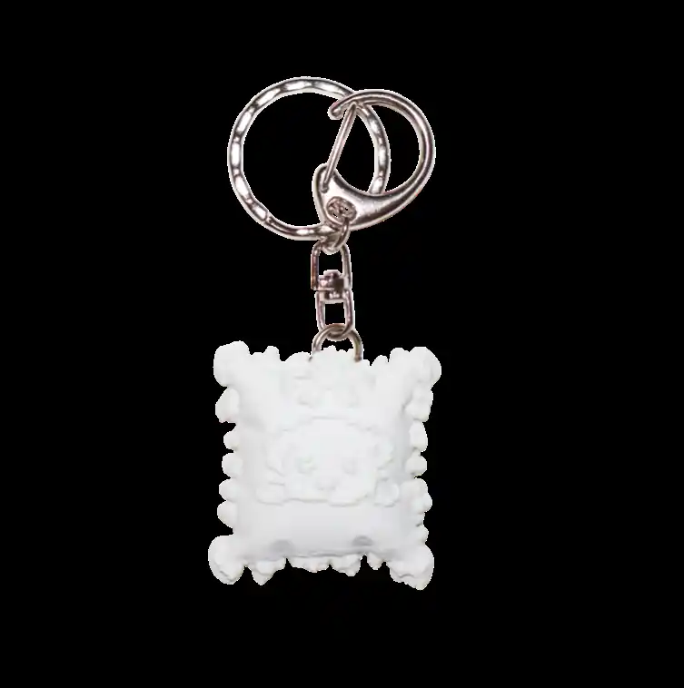 ふかふかのクッション模様をモチーフにデザインした犬の模様が刺繍が施されたキーリング |