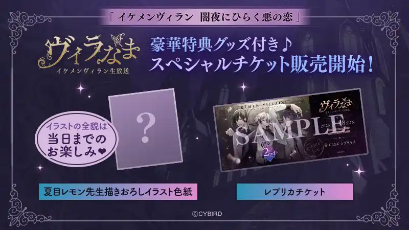 株式会社サイバード(本社:東京都品川区、代表取締役社長 兼 CEO 長嶋 貴之、以下、「サイバード」)が手掛ける、全世界でのシリーズ累計会員数4,500万人を誇る女性向け恋愛ゲーム「イケメンシリーズ」の人気作『イケメンヴィラン 闇夜にひらく悪の恋』(以下、『イケメンヴィラン』)では、2周年を記念して実施する公開生放送イベントのチケット販売を開始しました。また、都内最大級の日帰り入浴施設、「テルマー湯新宿店」とのコラボレーションが決定しました。 |