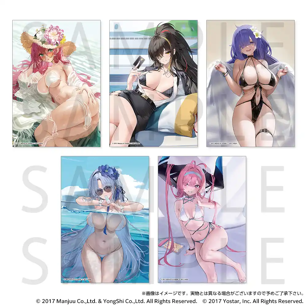 アズールレーンサマーフェア2025 事後通販受注期間中、『アズールレーン サマーフェア2025』対象商品を1会計につき3,000円(税込)毎にオリジナルブロマイド(ランダム)を、先着にてプレゼントいたします。(POP UP STOREと同様の絵柄となります。)対象店舗によって特典絵柄が異なります。特典は無くなり次第終了になりますので、予めご了承ください。 |