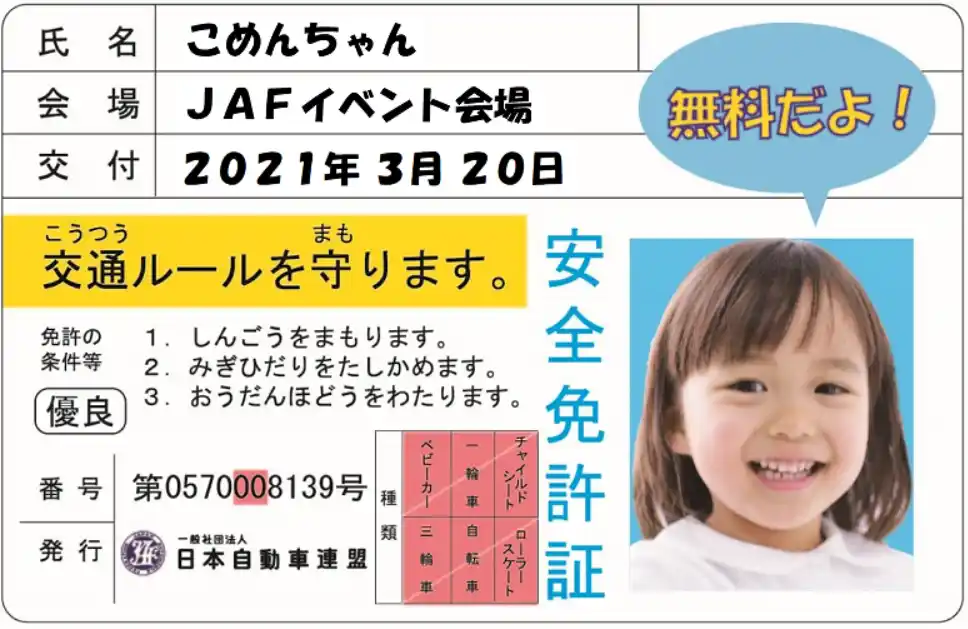 | 当日は、JAFスマートフォンアプリクーポンを提示していただいた方に、素敵なノベルティグッズをプレゼントします。また、小学生以下のお子さまを対象に「子ども安全免許証」の発行や、幼少期のお子さまには、ちびっこ隊員服を着てJAFレッカー車と一緒に記念撮影ができるなど、夏休みの思い出の一コマとなるコンテンツを用意しています。 | |||||||||||||||||
