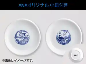 来年の干支である午(馬)と富士山、宝船をはじめとする縁起物をあしらい、背景に飛行機が飛んでいます。高台裏にはANAロゴが入ります。 |