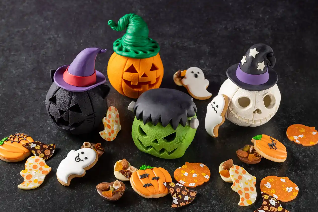 ハロウィンのシンボルであるジャック オ ランタンやミイラに加え、今年はコウモリや黒猫などの新たなモチーフが仲間入り。紫芋、パンプキン、ピスタチオの3種のフレーバーをお楽しみいただける3個入りと6個入りのセットでご用意いたします。ペストリーチームが手作業で丁寧に描く、おばけや黒猫の一つひとつ異なる表情にもご注目ください。 |
