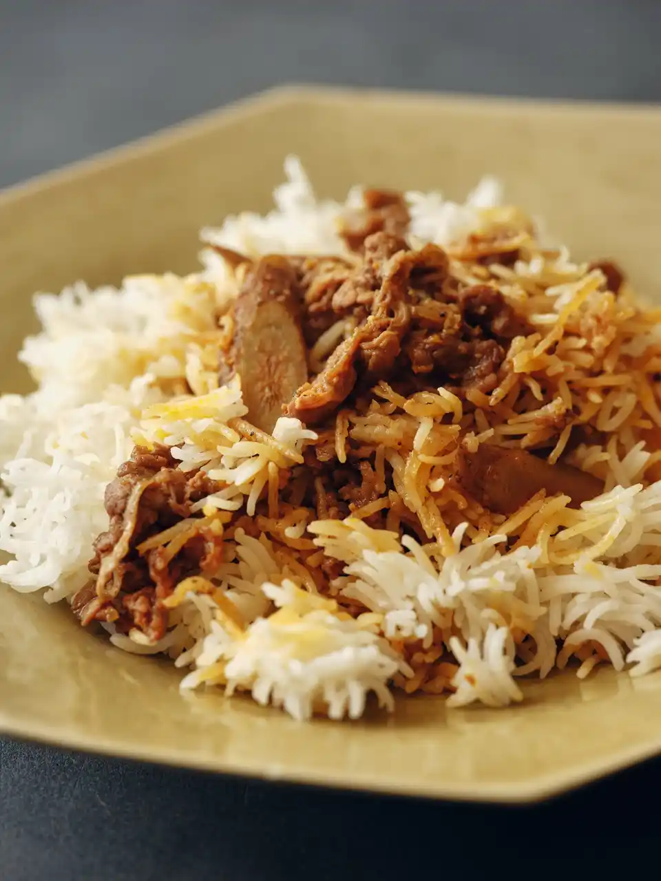 贅沢なスパイスとジューシーなチキンが重なり合う香り高いビリヤニ。香ばしく揚げた玉ねぎ、しっとり柔らかなチキン、スパイスや旨みをまとったバスマティライスの軽やかな食感が魅力です。 |
