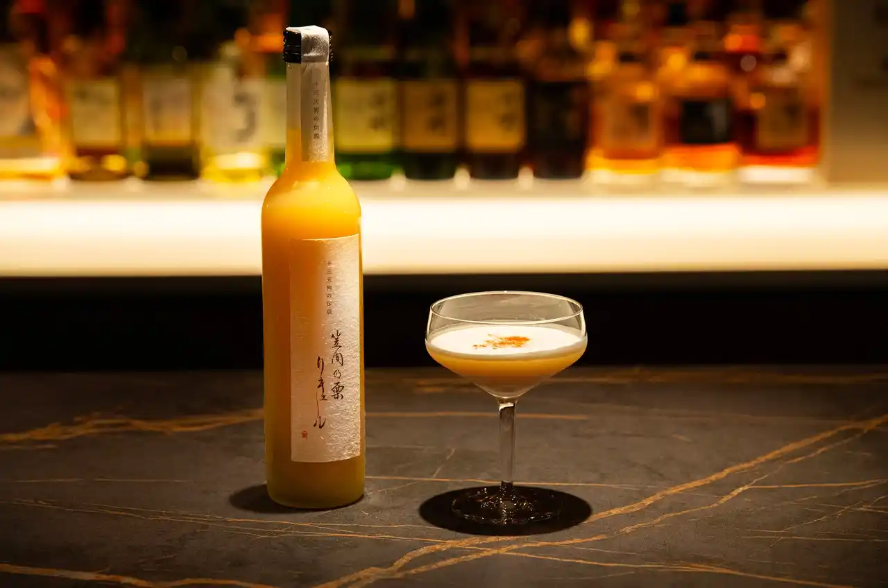茨城県産白身魚のオーヴン焼 菊池商店しょう油糀を使用した和風ソース、 茨城県産奥久慈なすのたたき 茨城県産大葉と鯛そぼろ、 つくば鶏もも肉のグリル ハニーマスタードソース、 笠間の栗のブロンディ、笠間の栗とバニラのババロアなど。 定番のローストビーフやにぎり寿司を含め、前菜からデザートまで約60種。 バー「カルーザル」 ◆秋のおすすめカクテル「笠間の栗アレキサンダー」 |