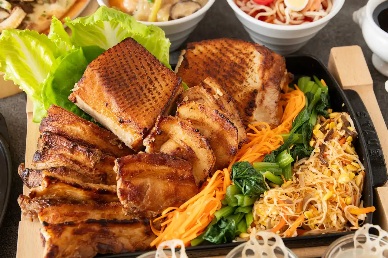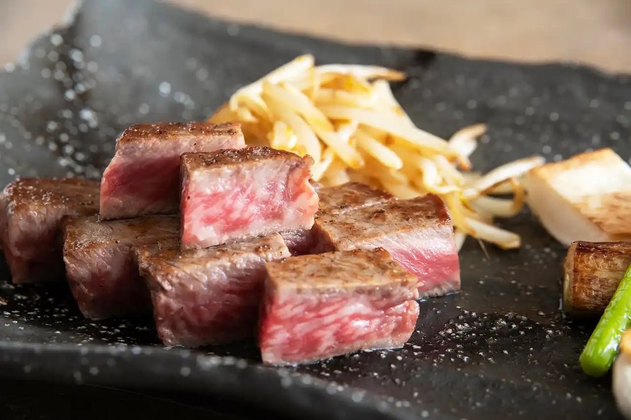 | 茨城県が誇る「常陸牛」は、指定生産者の磨かれた飼育管理技術と厳選された飼料により、30ヵ月にわたり育てられた黒毛和牛の中から食肉取引規格A・Bの4.5等級に格付けされた最高級ブランド牛です。快適な飼育環境と指定生産者の確かな技術によって培われた極上の霜降り牛肉を、山彦人気のガーリックライスとともに是非ご賞味ください。 | |||||||||||||