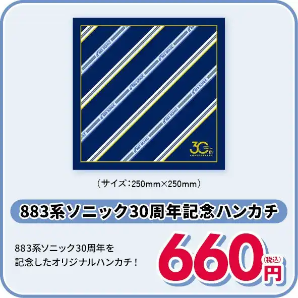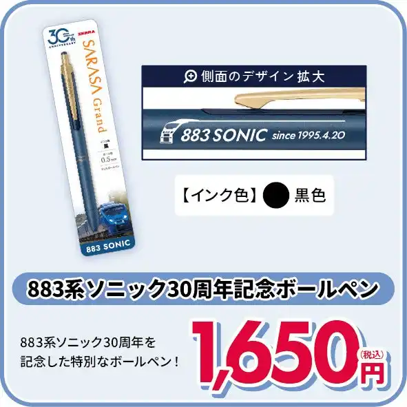 | 人気の列車グッズに加え、今回は883系ソニック30周年を記念した限定アイテムが登場! | |||||||||
