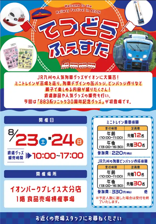 【九州旅客鉄道株式会社】 「イオンパークプレイス大分店」にてイオン鉄道フェスタを開催します!
